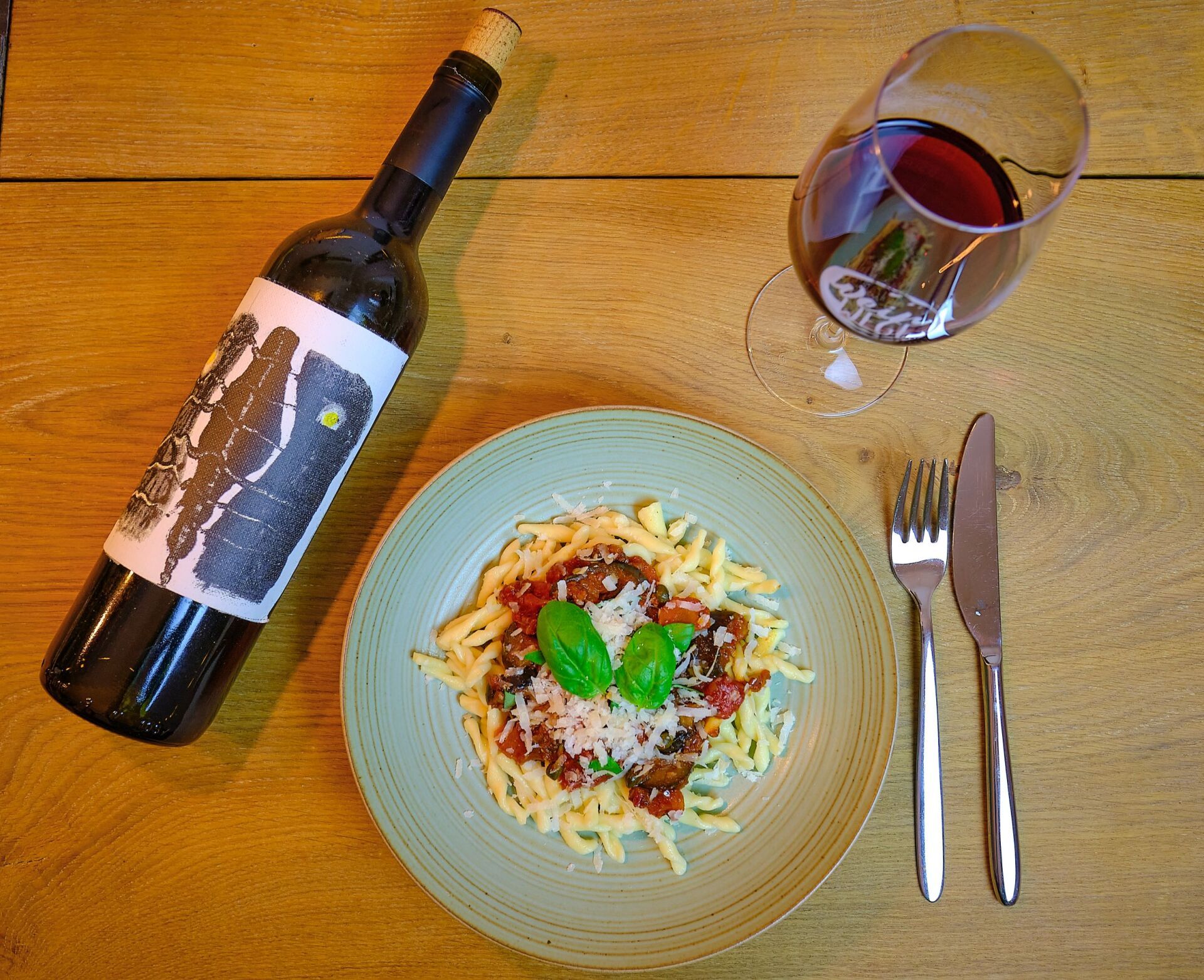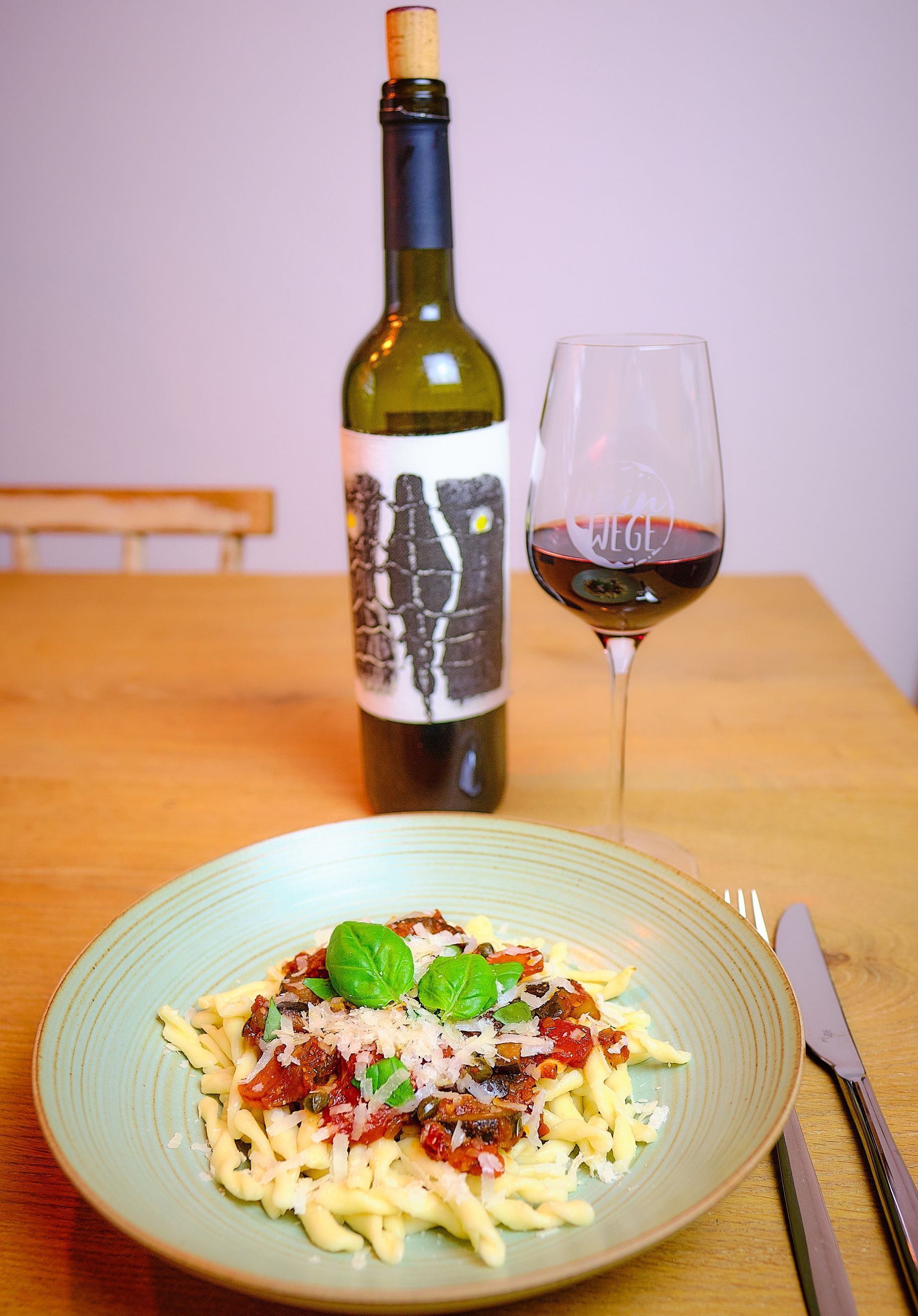 Kurz zu meiner Wahl (keine Werbung): Ich habe mich für einen ESTEL ESTIMA 2015 entschieden, da hatte ich noch eine Flasche im Keller. Er stammt aus Mallorca und ist eine Cuvee mehrerer Rebsorten. Er ist etwas filigraner und leichter als ein Primitivo und entspricht mehr meinem persönlichen Geschmack ;-)